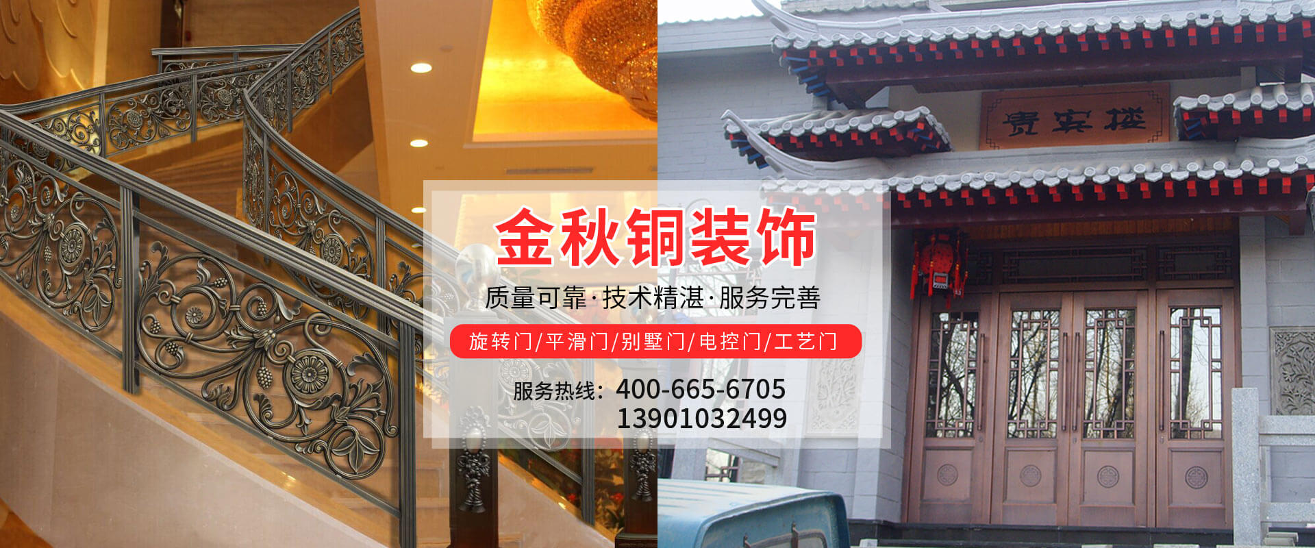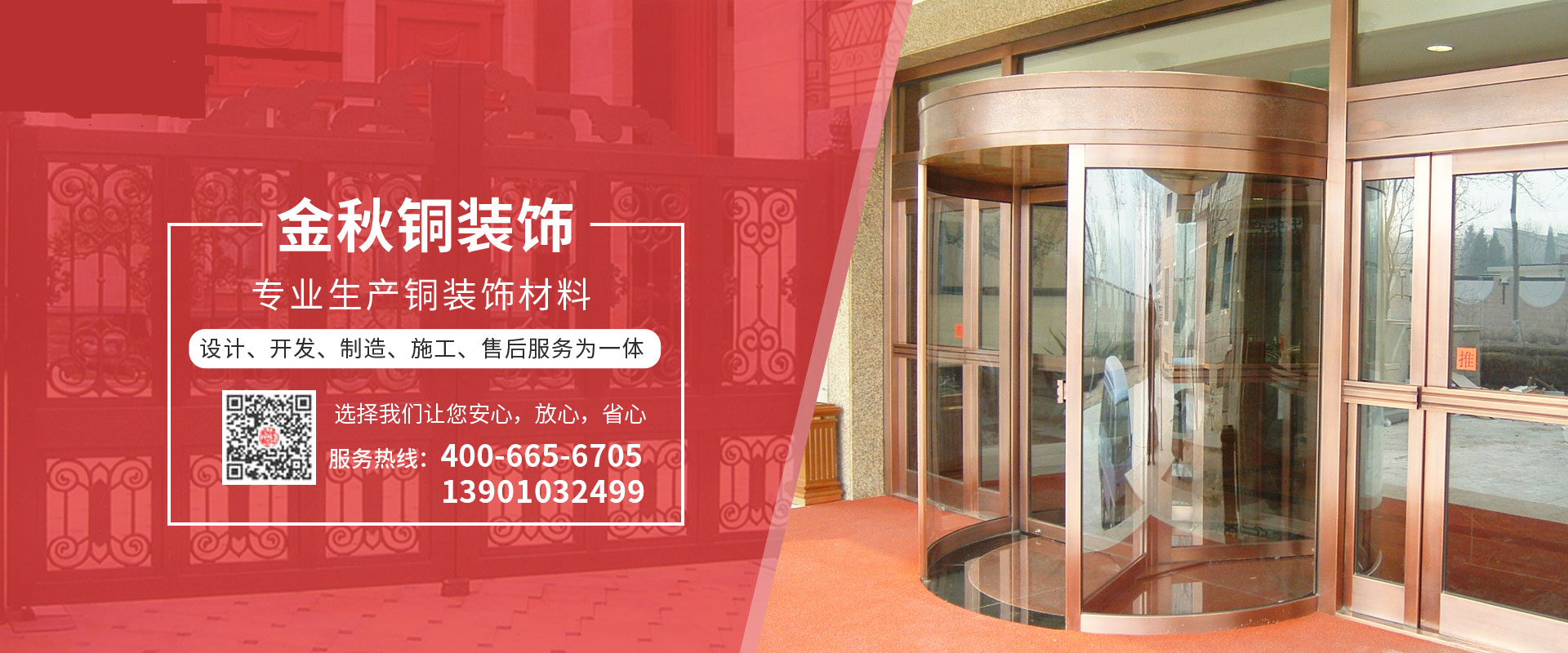 北京金秋銅裝飾材料有限公司是專(zhuān)業(yè)生產(chǎn)銅裝飾材料及設(shè)計(jì)、開(kāi)發(fā)、制造、施工、售后服務(wù)為一體的大型綜合企業(yè)。可承接建筑銅裝飾工程及五星級(jí)酒店、別墅、博物館、樓樘管所等高檔銅裝飾項(xiàng)目;生產(chǎn)各種規(guī)格的旋轉(zhuǎn)門(mén)、平滑門(mén)、別墅門(mén)、電控門(mén)、工藝門(mén)、旋轉(zhuǎn)護(hù)欄、屋頂銅飾防水瓦、浮雕壁畫(huà)......
